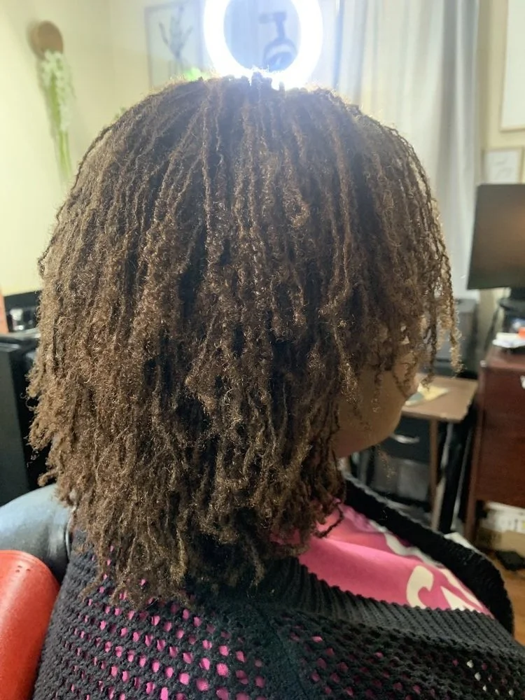 Maintain your locs with our precise retightening service. Our experts ensure each loc is securely tightened for a fresh, long-lasting look that enhances your natural beauty. text goes here